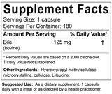 Each capsule contains one quarter the amount of ox bile as Ox Bile 500 mg. Derived from a...